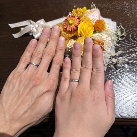 マット加工をしてもらってますので、気分に合わせて雰囲気を変える事ができて楽しいです。 入籍指輪も作っていただき、リングの大きさや手触り感もしっかり確認したので、安心して結婚指輪を作れた事がおすすめです。