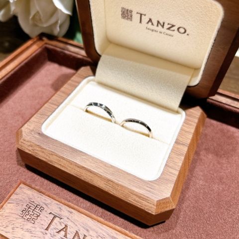 仕事中や生活の中でもつけっぱなしにできる、シンプルなデザインのものを探していました。tanzoさんではシンプルながらも、それぞれ好みのマットやスターダスト加工を入れてもらうことにより自分たちならではのオリジナルの指輪が完成してとても嬉しく思います。