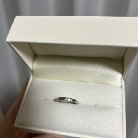 細めでシンプルだけれど派手すぎず存在感があるデザインでした。それにも関わらず、値段はリーズナブルだったのが良かったです。また、鍛造とPT900というで、耐久性にも優れている点もこの指輪を選んだ決め手です。