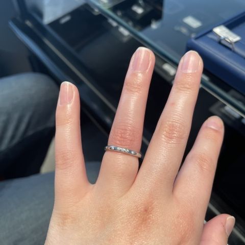 来店してまず初めに案内されたのが、手の角度で似合う指輪があるそうで、その診断してみて、 それではめてみていいなと思ったものを選びました。 付け心地もよかったです。 デザインは他になかったデザインでとても気に入りました。