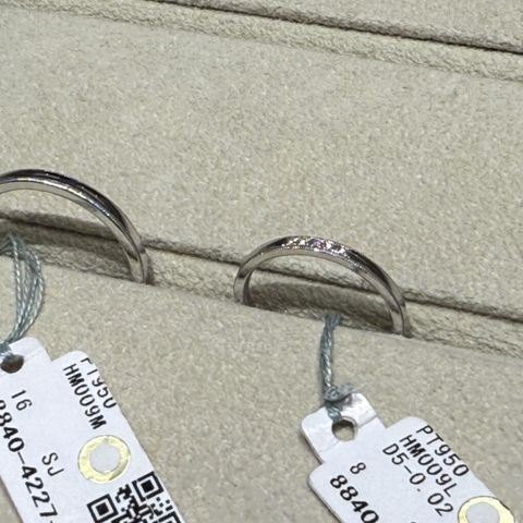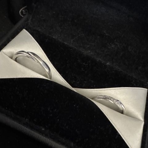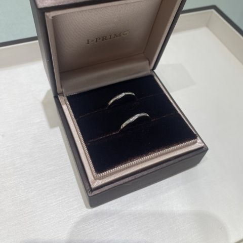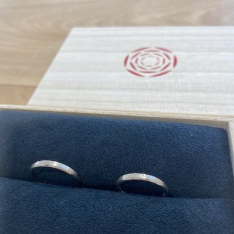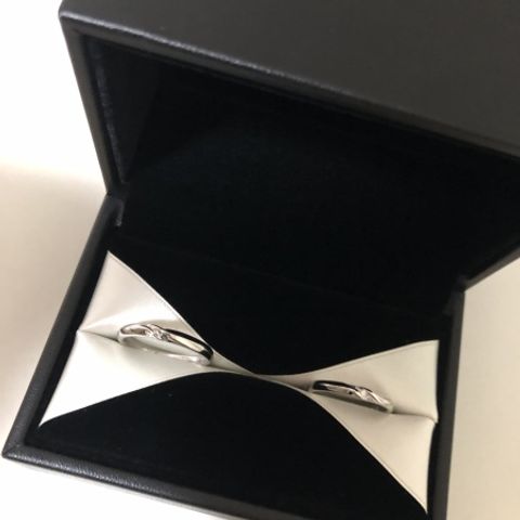 女性のリングはダイヤが両サイドにあり華やかな印象でそちらも素敵でしたがシンプルなものが良かったので男女でお揃いのデザインにしました。シンプルながらもオリジナル感を出したかったので真ん中の窪んでいる部分はマット加工にしていただいたので仕上がりに満足しています。