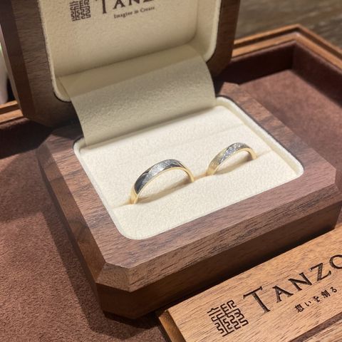 一つ一つ職人の手作りという点に惹かれました。 夫婦間で指輪の色味やデザインそれぞれ異なっていて、最初はお互い違うデザインの指輪にしようと思っていましたが、 お互いの好みが掛け合わさったデザインや加工方法を提案していただき、最終的に同じデザインの指輪でそれぞれの好みにあった加工をしてもらいました。