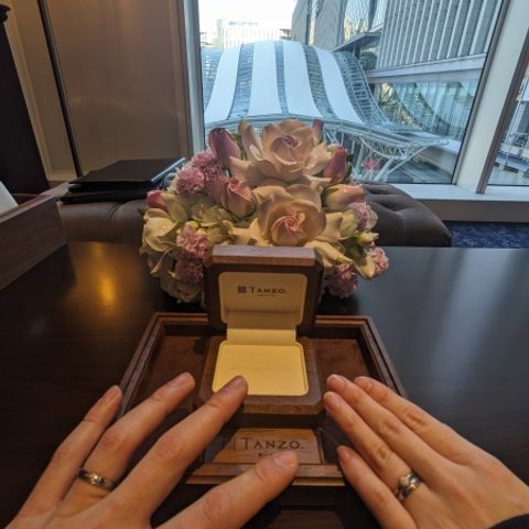 2人の予算や好みを考慮した上で色々な指輪を試着させて頂き、こちらの指輪を選びました。シンプルなデザインでずっと着けていられ、色々と悩みましたが、最終的に納得のいく価格やデザインの指輪を購入することが出来ました。