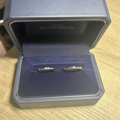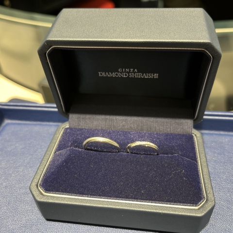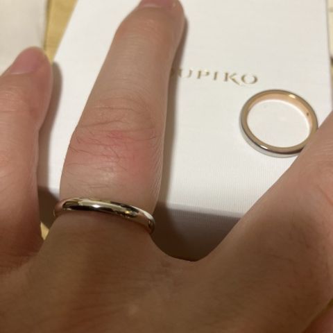 シンプルだけではなく輝きがあり特別感もあります。 どこでも毎日つけやすく品のある素敵な指輪です。 私はツヤのあるままの指輪にしました、主人はツヤけし加工にしたので選択できたのも良かったです。 素材も選択できてので肌馴染みのいいホワイトゴールドを選びました。
