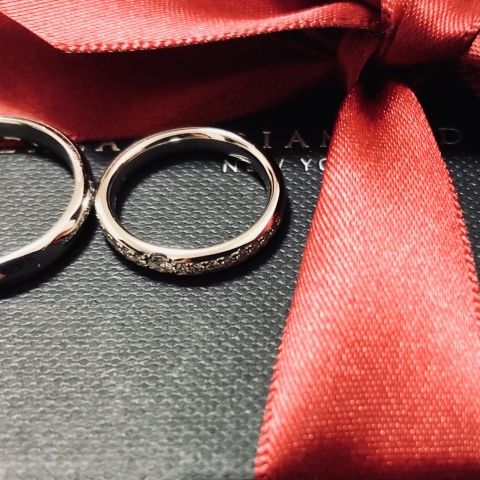 裏に好きな刻印柄などをできるところが決め手でした。 色々な候補の中から2人で選びました。 オリジナリティ溢れる指輪になりました。 ダイヤのクオリティも上げたり、形やマッド加工もできるのでとてもおすすめです。
