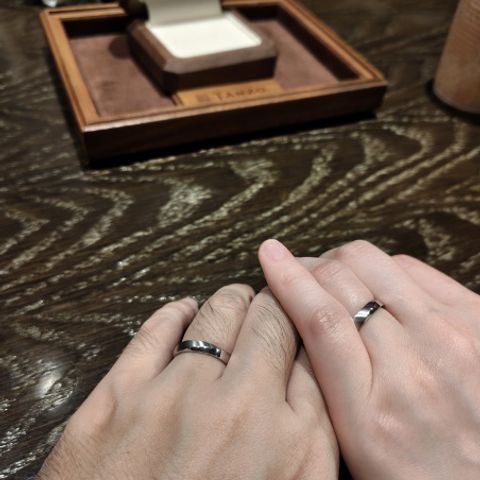 結婚指輪は、ふたりの絆を形にした特別なアイテムです。毎日身につけるものだからこそ、鍛造製法で作りたいと思いtanzoを選びました。長く愛用できる一生ものになりました。また、ペアで揃えたのでお互いの存在をいつも感じられ、特別な瞬間や思い出を指輪に刻むことができました。刻印も入れて世界に一つだけの指輪に仕上げてもらいました。