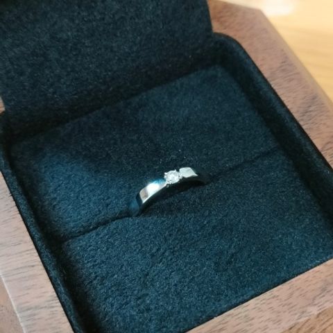 スタイリッシュだけどきちんとダイヤはついてて華やかさもあり、指輪の太さもちょうどよく指が綺麗に見えます。 ダイヤモンドの発色もすごく綺麗で指元を見るたびに嬉しくほっこりした気持ちになります。 毎日つけやすいシンプルなデザインです。