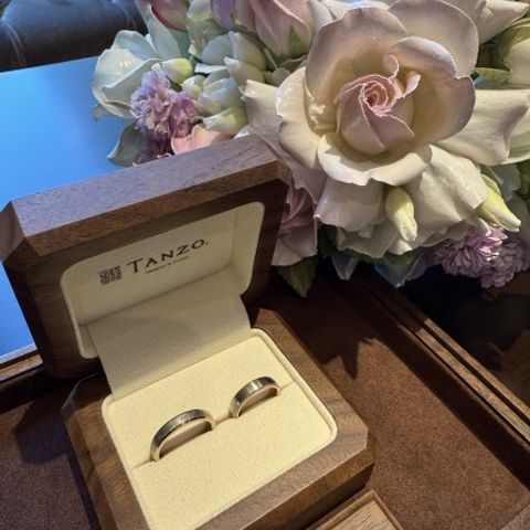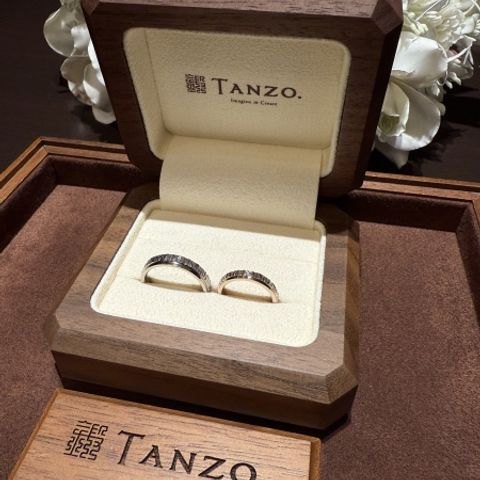 手が厚く指も太めのため、指輪は幅のあるものが作りたいと思ってました。TANZOさんでは、実際に6mmくらいまで0.5mm刻みで試着させてもらうことができ、自分の手に合いそうな幅を選ぶことができました。デザインも2人の指輪にペア感が出るように選ぶことができました。