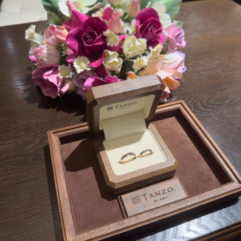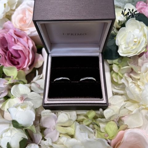結婚指輪は、シンプルイズベスト!ペアリングですが色も形も自分好みにしたのでお互い違いますが、仕上がって並べてみたらしっくりくる形になりました。仕上げの様式だけは「クリア」でと揃えたことが功を奏したようで良かったです。