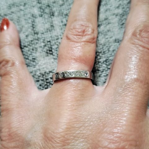 TIFFANY&CO.のOの部分にダイヤモンドが入っててこちらを購入いたしました。輪が細すぎる事なく洗い物や、入浴時も外さなくても錆びない物を探してましたので一目で決めました。見た目もつけ心地も最高です。