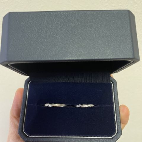 ウェーブの可憐さが素敵で、そして中央にきらりと、目立ちすぎず、でも存在感は残すちょうど良いバランスでダイヤが入っていて本当にいい指輪に出会えました。買って正解です!ペア感もとても出ていてシンプルなのにときめく、普段使いにもってこいなリングで大変満足です。