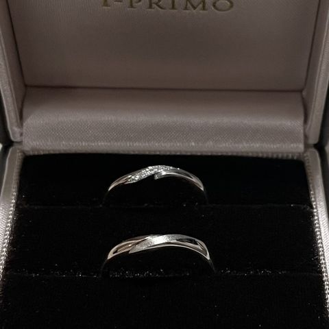 少し個性的なデザインなのが気に入りました。 2人のデザインはほぼ同じなのですが、女性用の方は真ん中に宝石があしらわれていて綺麗です。また、互い違いに加工が可能で、お揃いだけどお揃いじゃないデザインが出来るのも良かったです。 よく御祝儀で使われる水引をイメージして作られたデザインで、末永く結ばれる、という意味が込められているところもとても良いなと思いました。