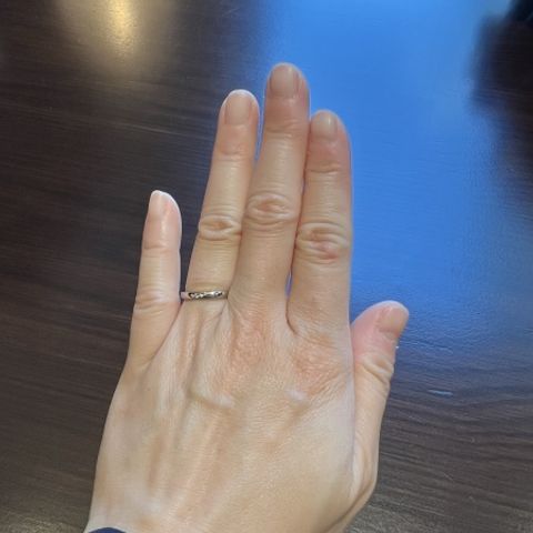 シンプルですが飽きずに何年もつけられそうです。 様々な指輪の加工などがあったのでそこも周りと被らずに つけることができるとおもいました。指輪の号数も他社のブランドさんと比べて幅広くあったため、そこもいいなとおもいました。