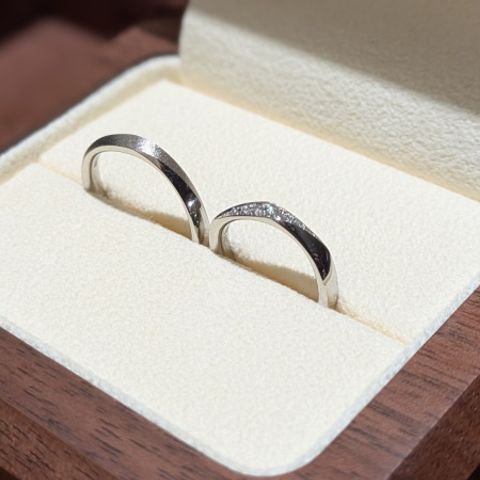 シンプルでもきらりと光るダイヤが可愛いと思いました!さりげないウェーブになってるのも良いと思いました!普段指輪をしてこなかった私にも着け心地が良くて気に入りました。刻印なとで、自分達だけの指輪になるのが嬉しいです。