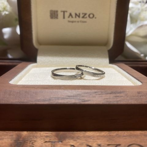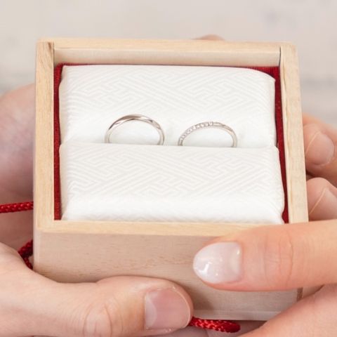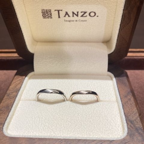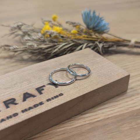 Pt950で丸みのあるシンプルなプラチナリングで探していたところ、つけ心地がよく、ふたりともしっくりきたのがGemmyoでした。 少しひねりのあるデザインのものも素敵だったのですが、日頃指輪をつけ慣れていないこともあり、ストレスなく付けられそうなものを選びました。