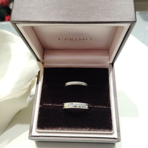 細めのストレート、ミル打ちのハーフエタニティを探してました。他の店舗にもありましたが、ミル打ちが気に入りこの店舗に決めました。値段も予算内だったので、満足してます。男性用はペアではないですが、同じミル打ちの彼の好む太めの指輪にしました。鍛造製法なので、丈夫さも安心してます。