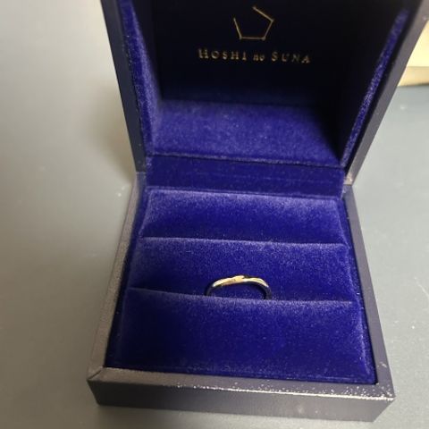 細くて着け心地が良いです!!彼も私も指が細いので、ウェーブで細身が似合うので、ウェーブデザインのスターライトというリングにしました。 女性用はくぼみのところがゴールドにもできるので、ピンクゴールドを選択しました。
