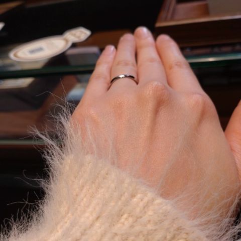 着け心地がとてもいいです。他のリングショップも何店か試着しに行きましたが、アイプリモさんんl指輪が一番違和感なく着けられたのでここに決めました。これから長い間着けることを考えるといい決断だったと思います。