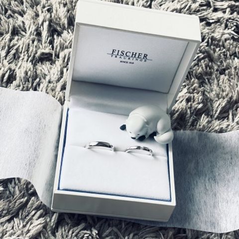 リングの色から磨き方も選べて表面の飾り方?も選べたので妥協せずお互いが気に入った指輪ができて本当によかったです! そして愛犬が白と黒なのでさりげないブラックダイヤを入れていつでも3人一緒にいれる気持ちになれて大満足です!