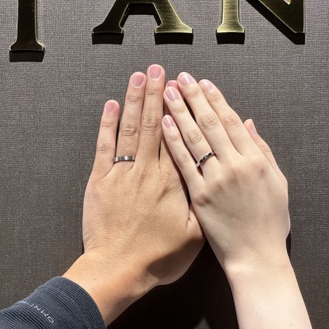 購入時に結婚指輪とは別に入籍指輪の作成を提案されました。 せっかくなので入籍指輪を先に作ってもらい、1ヶ月ほど試着した上で、結婚指輪のサイズ・太さ・デザイン等の最終決定を行いました。 実際に付けてみることで分かったことも多く、実際にサイズや太さを微調整してとても満足のいく結婚指輪に仕上げることができました。 指輪のデザインは多様な選択肢から自分たちが一番気に入ったものを選ぶことができました。 テイストは2人で別々の表面加工がされているが、ペア感のある統一感のあるデザインになるように選びました。 素材に関しては、ブランド名にあるように鍛造製法の申し分のない高いクオリティ、長く安心して使えるクオリティだと思っています。