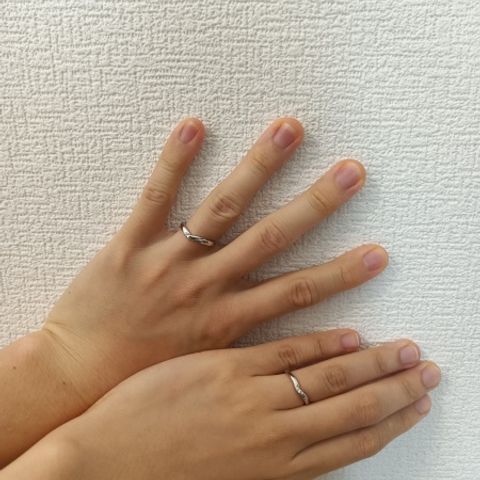 ダイヤをいれているがすごくシンプルで、普段使いがしやすそうなところがお気に入りです。婚約指輪がウェーブなので、そのウェーブに合わせて作ってもらいました。結婚指輪だけでも、ダブルで付けてもとてもかわいいです。