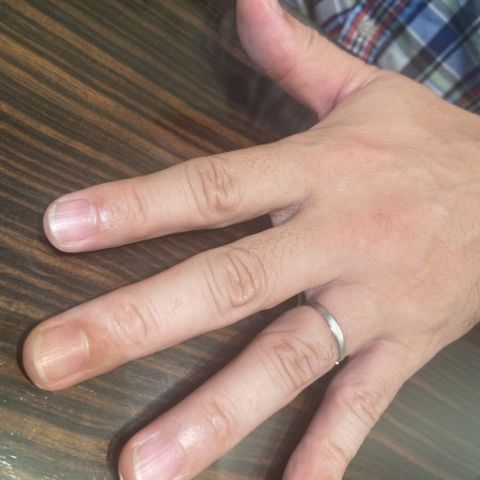 長く付けられるシンプルはデザインにしました。 太めのものが好みだったのでこだわりました。 甲丸のツヤ感とつけ心地が気に入っています。 フルオーダーということで、細かなデザインなども決められることも多くて楽しかったです。