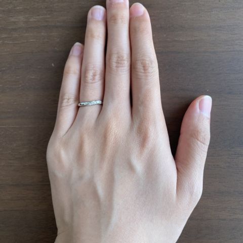 毎日つけていて違和感のない、予算20万円以下の指輪を探していました。一粒ダイヤの指輪はどうしても好きになれなかったのですが、購入したリングは埋め込み式のダイヤでひっかかることもなさそうだったので気に入りました。