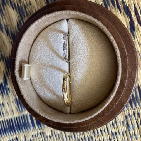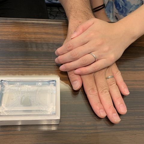 サイトでいくつか目星をつけて来店しました。実際につけてみて男女ともに細めがよくてセットリングから選びました。メンズはゴールドで中心を艶消し加工しました。着け心地も良くて普段つけても違和感なく、凄く凄く良かったです。