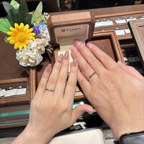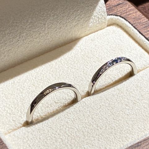 クラシカルでフェミニンな印象で、派手すぎない王道デザインです。メレダイヤも含めて輝きがとても美しく、うっとりします。リングは中央に向かい少しだけ細くなるデザインなので中央のダイヤが引立ちます。個人的には繊細で可憐なお花のようなイメージに見えます。 何よりダイヤの輝きがとても綺麗で、カラット数の割に華やかに見えたことや、メレダイヤのデザインなのに将来的なサイズ修正も可能というアフターサービスの安心感、そして店員の方の接客の良さでこちらに決めました。
