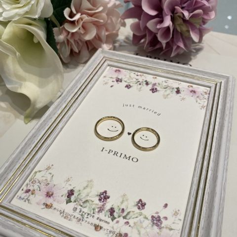 付け心地が良く、デザインが可愛いです。二人の指輪をお揃いのデザインにして、奥さんの指輪にはダイヤとスターダスト、旦那の指輪は同じデザインのツヤ消し加工を施しました。刻印は結婚記念日とお互いのイニシャルを入れました。
