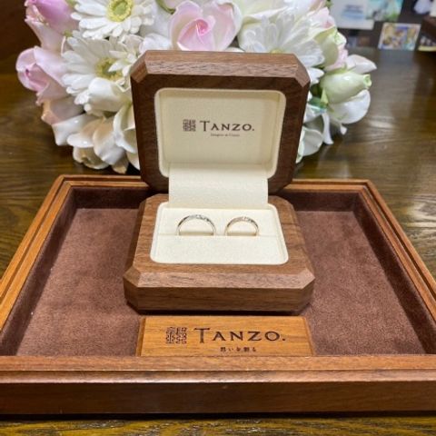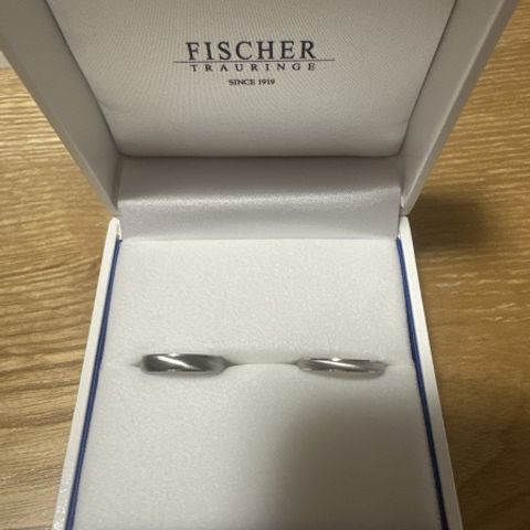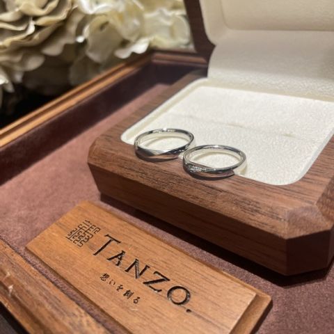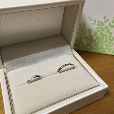 前に使っていた指輪が細い物だったので 今回は、少し太めで指輪自体の形も変えました。 指輪にもたくさんの種類があり、すごく悩みましたが、自分たちの指に合うような指輪を何個も持ってきて頂きその中でやっと決めることが出来ました。