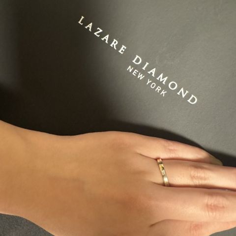 ハイジュエリーから、ブライダル専門まで、 様々なお店で結婚指輪を検討していました。 ラザールダイヤモンドのデランシーの決め手は、指が長く見えるところが決め手でした。 指輪を机に置くとわかりますが、少し湾曲しているため、薬指につけた時、指の付け根に沿っているため、指が綺麗に見えます。