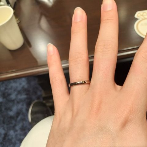 【指輪のデザイン・テイスト・素材について】 ・フルオーダーメイドの為、自由にデザインを決めることができる ・上記の理由の為、サイズを0.5単位で決めることができる ・ブランド独自?の素材であるコーラルピンクとシャンパンゴールドがある(この色に決めました) ・指輪の幅や角丸、ヘアライン加工(マットな仕上がり)等の細かい選択ができる (シンプルなデザインの中でも細かくデザインを決めることができる) 【価格について】 ・フルオーダーメイドの為、少し値は張るかもしれないが 納得のいく指輪ができること、アフターケアを考えると問題なし