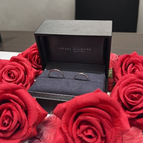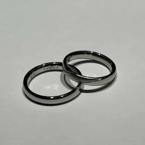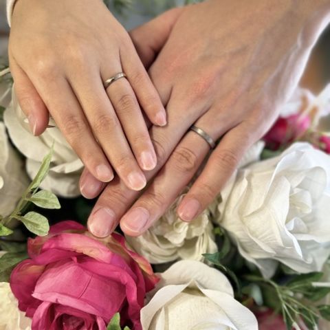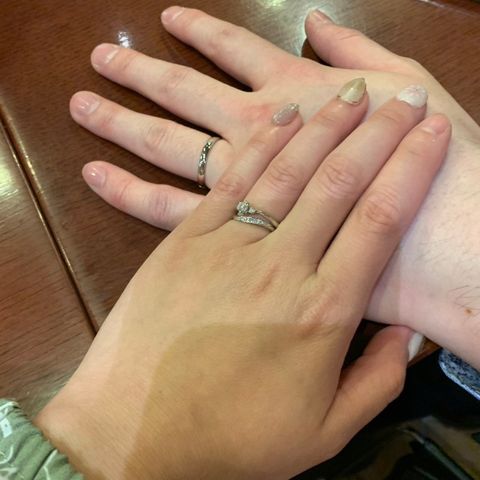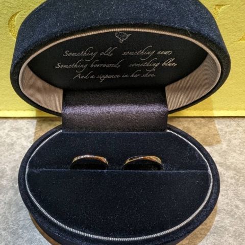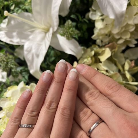 夫婦それぞれの好みのデザインを詰め込んだ指輪を作って頂きました。 シンプルかつ繊細なデザインに仕上がり、 とても満足いく指輪になりました。 ダイヤモンドもアクセントになり、 光り方もまた違って見えるので、それぞれ特徴がある指輪となりました。