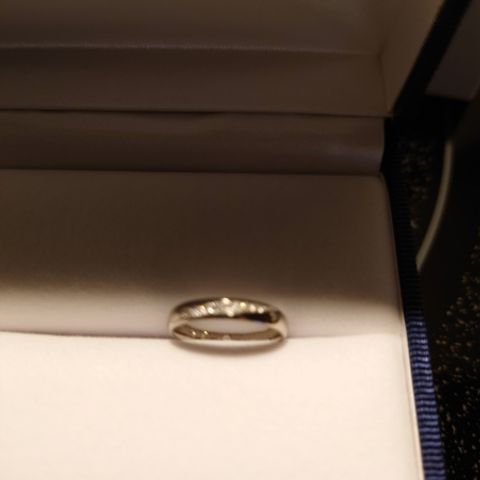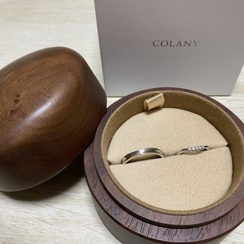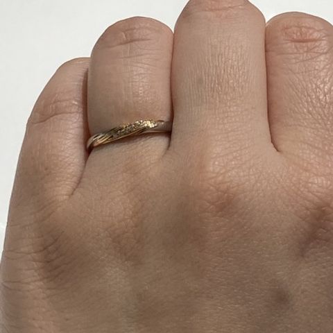 指が太いので指輪が苦手ですと相談したところこちらを進めて頂きました。プラチナに、ゴールドのラインが入っているデザインに一目惚れでした。ピンクゴールドと悩みましたが、肌色と合うと、こちらを購入。 ちょうどフェアをしていたので、4℃さんの独自のプラチナへ無料で変更して頂きました。 お値段も予算以内で収まりました!
