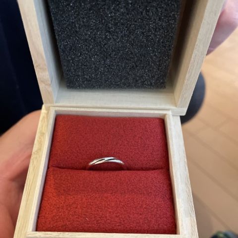プラチナの、一般的な鋳造ではなく鍛造で造られていることで丈夫とのこと。普段ずっとつけるつもりだったので、この点は特に魅力的でした。 今回作ったものはS字カーブとミル打ち、マット加工をいれましたが、いずれもしっかり希望をヒアリングしてもらった上で適切にご提案いただいたことで大満足の出来になりました