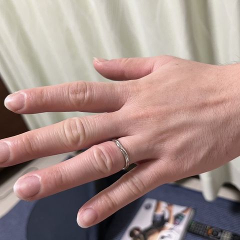 ウェーブ状なので指が綺麗に見えます。 シンプルですが、マット素材である点がポイントです。 実際にはめるとつけ心地が良かったです。指にはめた際の安心感と、違和感のなさがとても良かったです。 カジュアルな服にも似合うため普段使いしやすくてオススメです。