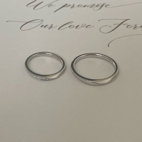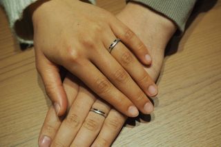 ねじりを入れることでシンプルだけどおしゃれになりました。2人同じデザインで、見た目も付け心地も自分たちにぴったりです。手作りなので大きさも0.5段階で調節できる点も良かったです。より自分たちの指の大きさに合う指輪を作ることが出来ました。