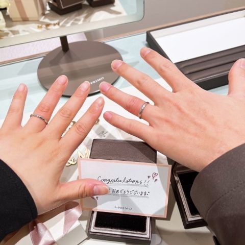 とにかくシンプルなものを購入しようと考えていたのですが、アイプリモで手の骨格診断や、スタッフの方にたくさん相談にのっていただき、自分の手にぴったりのリングを購入できました。V字でダイヤモンドがシンプルだけどかわいいデザインがお気に入りです。