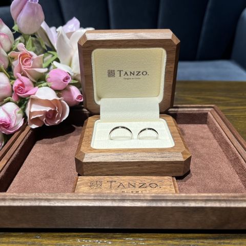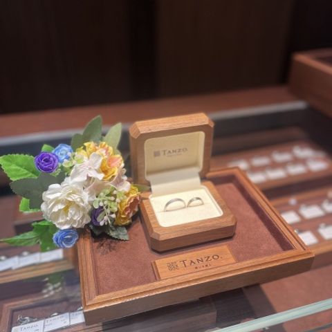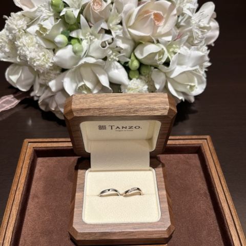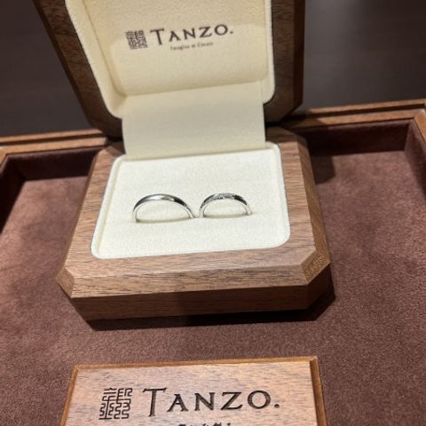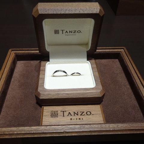 指輪探しをするうちに、お互いの理想の指輪が見えてきました。既製品だともう少しここがこうだったらいいのに…というこだわりも出てきたところで、伺ったのがtanzo.さんでした。 私(女性)は3㎜シャンパンゴールド、S字強め、ミル打ち加工で、彼は2.5㎜、プラチナ、S字弱め、ライン加工、マット加工にブラックダイヤです。 なにより、一生物の結婚指輪として、強度の高い鍛造製法で気に入ったデザインの指輪となり、大満足です。時間をかけてデザインを考えた分、愛着も湧きました。 2本で35万円程度だったため、相場よりは少し高いかもしれません。太さが太いほど、加工を追加すればするほど、プラスαで料金がかかるため、リーズナブルに…とはいかないかもしれませんが、色々な店舗で指輪を探して、今ひとつ決定打にかけるなと思う方は、一度来店してみてもよいかもしれません。