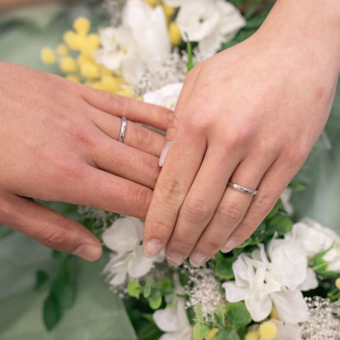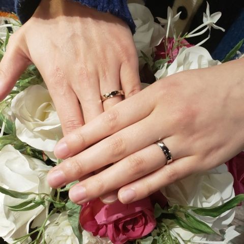 シンプルでありながらも存在感のあるところが気に入っています。 また、男性は一部をマット加工し、女性はダイヤモンドを3石から5石にオーダーしたことで、ほかの方とは被りづらくなり、私たちらしさをより表現できた指輪ができたと思います。