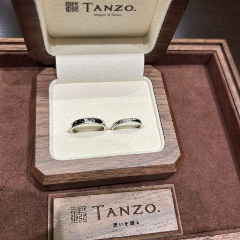 婚約指輪もtanzoさんでオーダーメイドして作成したので、それに合わせた結婚指輪を担当の方と相談しながらオーダーしました。自分で考えた一つしかないデザインを形にすることが良かったです。デザインの決める際、実物の見本を見ながら考えることができるのでデザインを考えやすかったですし、悩んでいたら担当の方と考えながら決めることができたので良かったです。