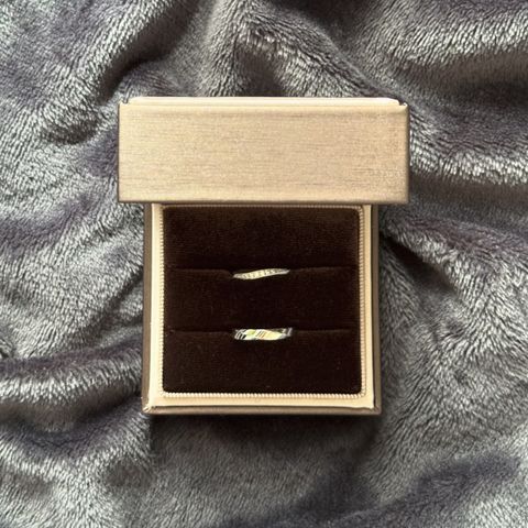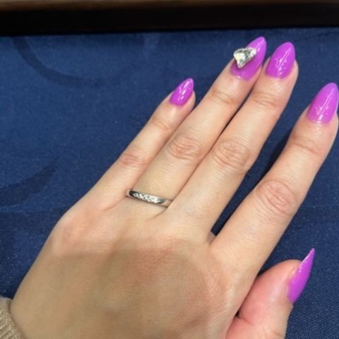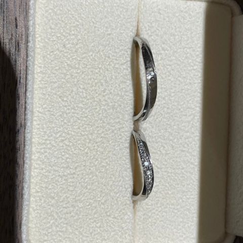 お互いの好みが違ったため指輪選びで迷っていました。 店員さんのアドバイスや、それぞれの好みに応じた指輪を見つけて下さりその中から絞っていき、お互いが納得いく指輪ができた。 ダイヤモンドの輝きが綺麗でとても満足です。