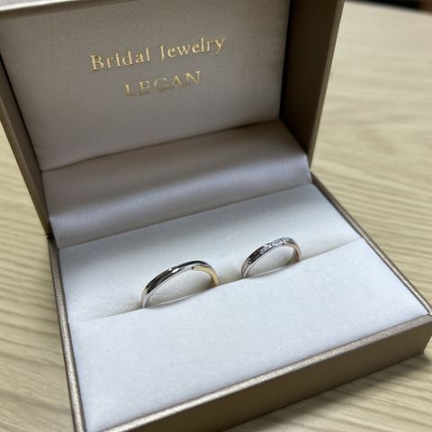 まず、ペールブラウンゴールドという色味がとても気に入りました!他のお店にはない絶妙な色で2人とも見た瞬間いいねってなりました! デザインもシンプルながらも少しデザイン性があってカジュアルでもキレイ目にもつけられると思いました。