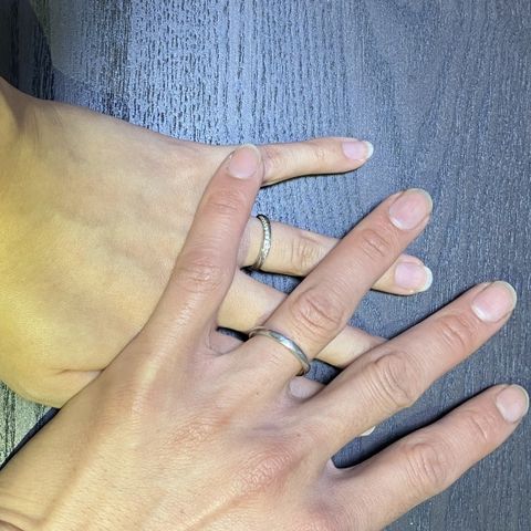 逆ウェーブで水かきが深くても馴染んでとても気に入っています。 マット加工もウェーブに沿っているのでデザインも好きです。 内側にはお互いの誕生石を交換して埋め込んでもらいました。見えないからこそ特別に思えます。
