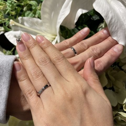 デザインは2人が気に入った加工を組み合わせました。職人さんの技術がたくさん詰め込まれていて、異なる質感や光の反射を楽しめます。 たくさんの材質や加工から選び、店員さんとデザインを決めていったので、どこにも売っていない特別感に満足しています!