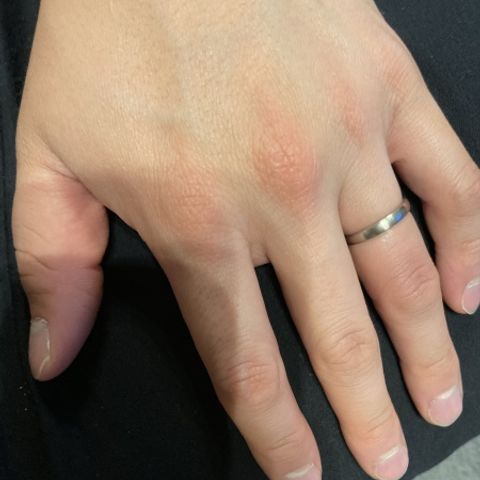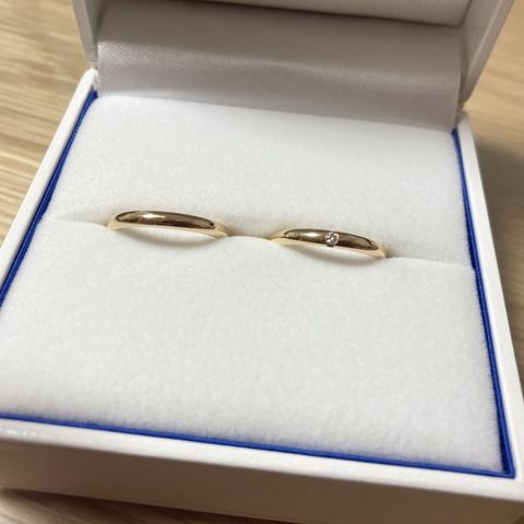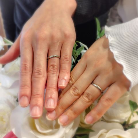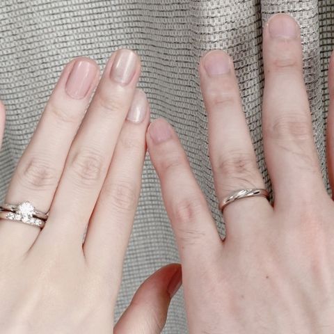 シンプルでありつつも、人と少し違う自分たちらしさを出したくて、色をこだわりました! 色白な方ではないので、この色味の方が手に馴染んでより良かったなと感じています。 指輪も滑らかでつけやすく満足しています。