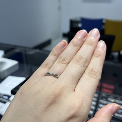 こちらのお店の方が、普段使いしていても折れたり、目立った傷はつきにくいですよ、と付けている指輪を見せて下さって、何年経っても大丈夫なんだな、指輪を外さず生活出来そうなので良かったです。 もちろんデザインも素敵で、カーブしているので、指が長く綺麗に見えます。 細めな指輪が、手が綺麗に見えます。
