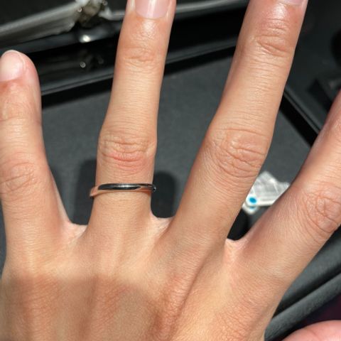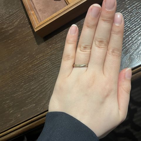 シンプルかつデザインも入っていて、この価格帯で買えるのはすごく良かったです。これより少し華奢なデザインの指輪もあり迷いましたが、年齢が上がっても手元が寂しくならないような存在感も出したかったので、こちらのデザインにしました。
