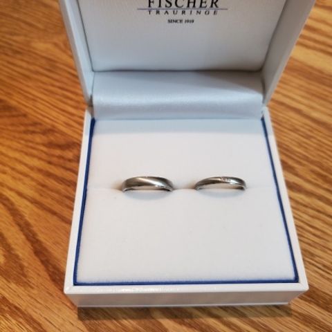 色やデザインは少し違いますが、Vカットで統一性を持たせた結婚指輪にしてもらいました。お互いにこだわりたい部分は妥協せずつくれたことに満足しています。更に、自分達のつくりたい指輪がつくれただけでも満足ですが、値段もリーズナブルなところもよかったです。